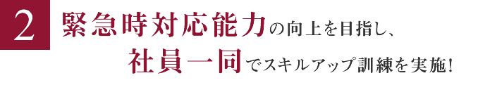 万が一の緊急時の対応を協議し、常に迅速に最善の行動を社員一同が取れるようにスキルアップ訓練を実施しております。