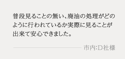 廃油の収集運搬から処分、再生までを一貫して行うことが出来る愛知ラインリックの、